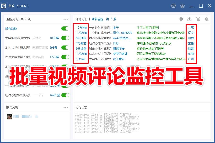 黄瓜-抖音评论实时监控协议采集工具-批量评论区监控-无需登陆账-支持导出