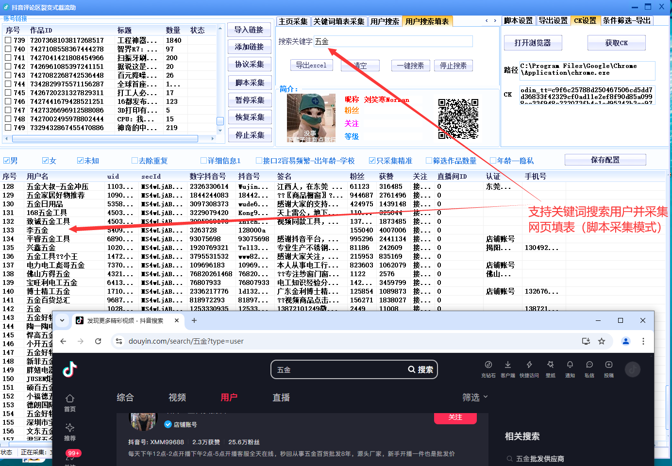 抖音评论区裂变式截流助手-自动化截留抖音视频评论区/关键词搜索采集精准用户(协议/脚本双模式精准采集)